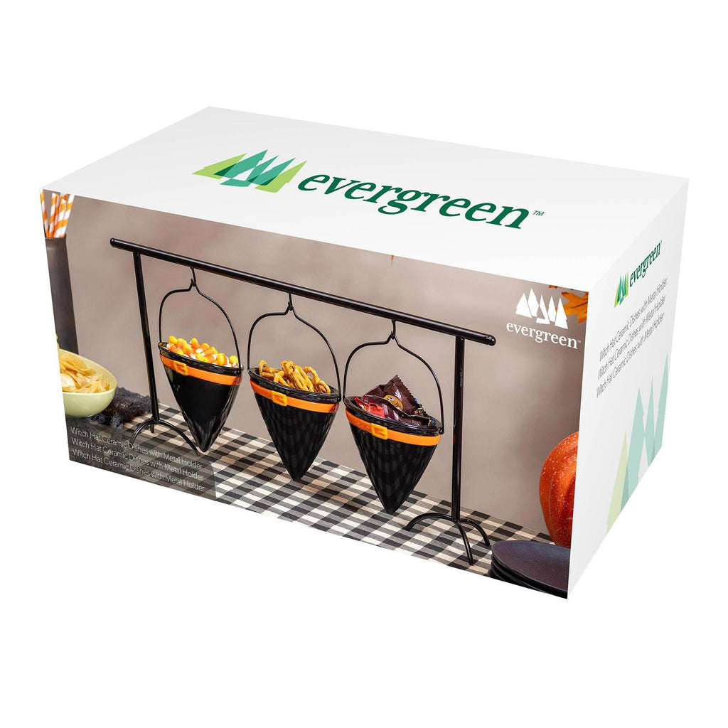 Witch Hat Ceramic Dish with Metal Holder Set, 19"L