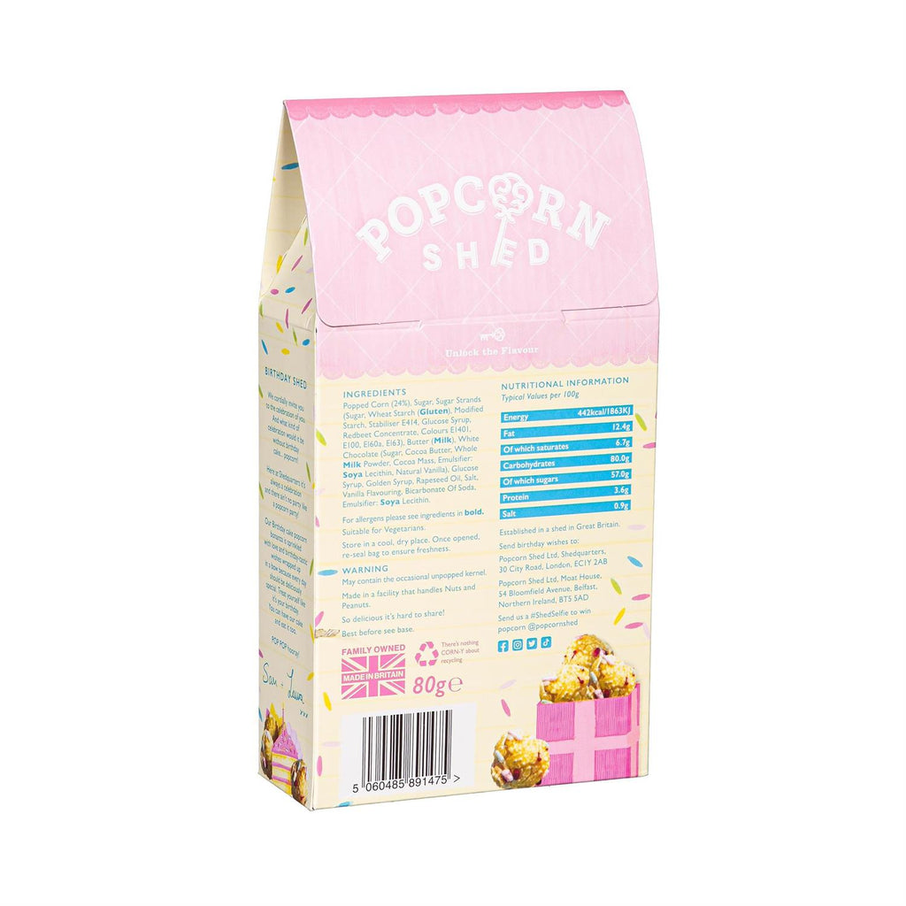 Indulge in a celebratory treat with Popcorn Shed's Birthday Cake Popcorn. This gourmet snack combines the sweet essence of vanilla cake and caramel, perfectly topped with colorful sprinkles. Ideal for birthdays or any festive occasion, this handcrafted popcorn is made with all-natural ingredients, ensuring a delightful and guilt-free experience. Packaged in a convenient 80g (3oz) size, it's easy to enjoy on the go or share with friends. Elevate your snack time with this delightful and festive popcorn flavor.