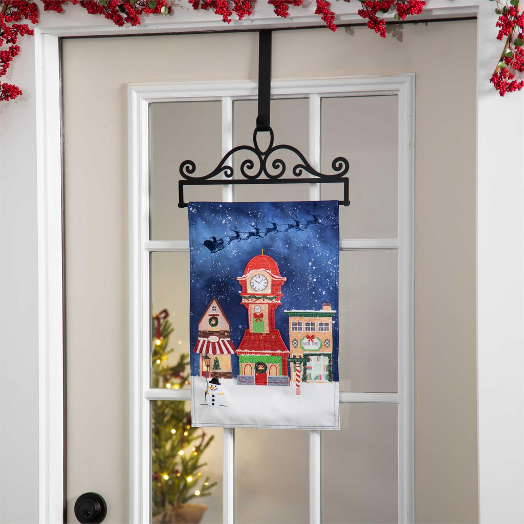 Bring joy to everyone's world with this striking Garden Flag that features a darling festive motif. It shows off a beautiful Christmas town set against a richly blue night sky and even has Santa driving his sleigh through the air. This flag is perfect to hang up throughout the winter season to welcome family and friends to their homes. Made of durable material, this lively flag is designed to withstand a variety of weather conditions. Fade-resistant fabric with tight, detailed stitching and printed ink protected with a watertight seal keeps this flag vibrant and beautiful.