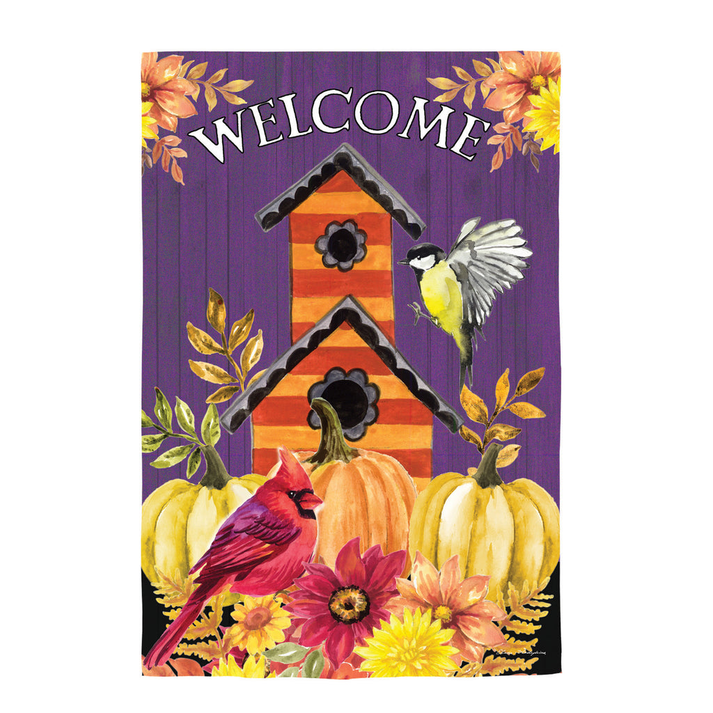 Welcome Fall Bird House Moire Garden Flag,14m11938