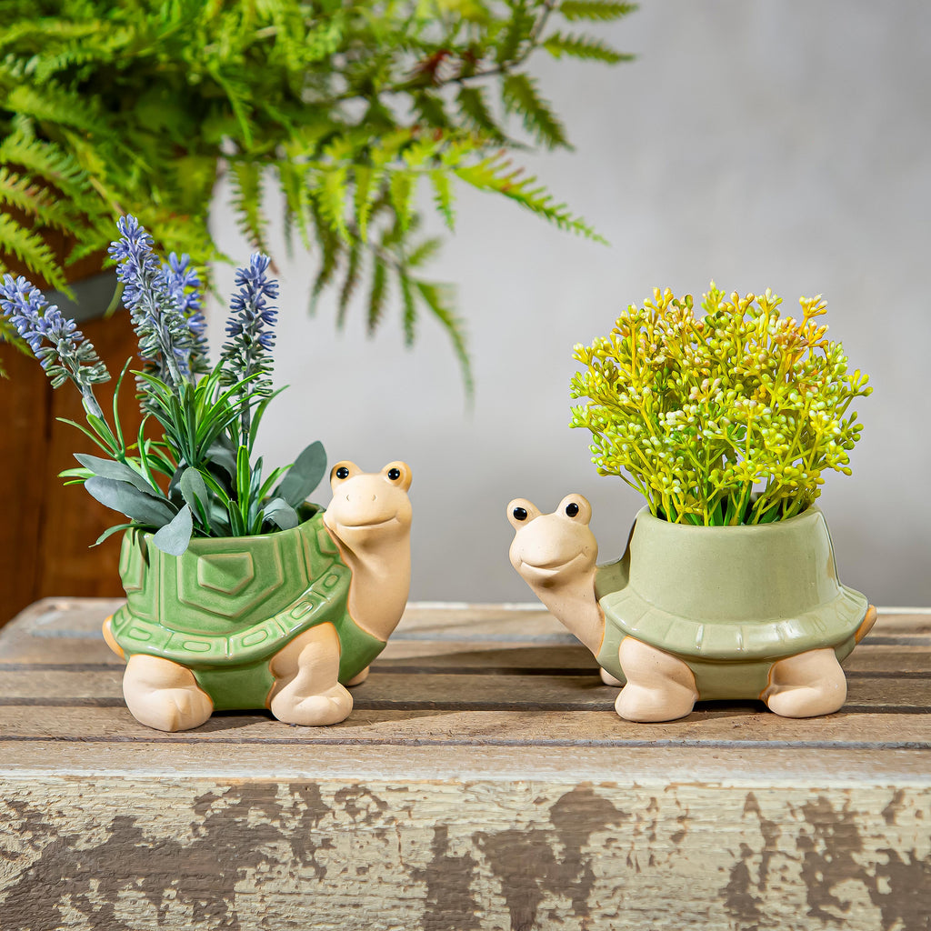 Add a touch of whimsy to your garden with the Palm Beach Planter set, featuring charming ceramic turtles. Perfect for indoor or outdoor spaces, these planters are ideal for small plants or succulents.