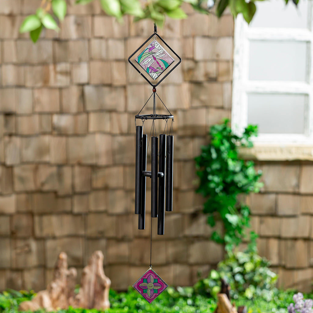 The Avria Stained Glass Hand Tuned Wind Chime features an elegant dragonfly design that adds a touch of whimsy to any garden space. Its hand-tuned chimes produce a soothing sound, perfect for creating a tranquil outdoor environment.