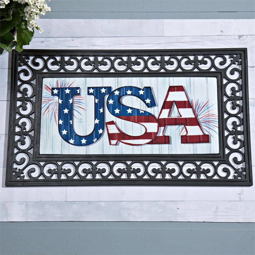 Celebrate American pride with the USA Fireworks Sassafras Switch Mat, a vibrant addition to any doorstep. This mat features a striking design of the USA letters adorned with stars and stripes, set against a backdrop of colorful fireworks. Crafted for durability and style, it fits perfectly into any Sassafras mat frame. Ideal for seasonal decor, this mat adds a festive touch to your home during patriotic holidays like Independence Day or Memorial Day. Measuring 22 inches in width and 10 inches in height, it’s the perfect size for welcoming guests with a touch of national spirit.