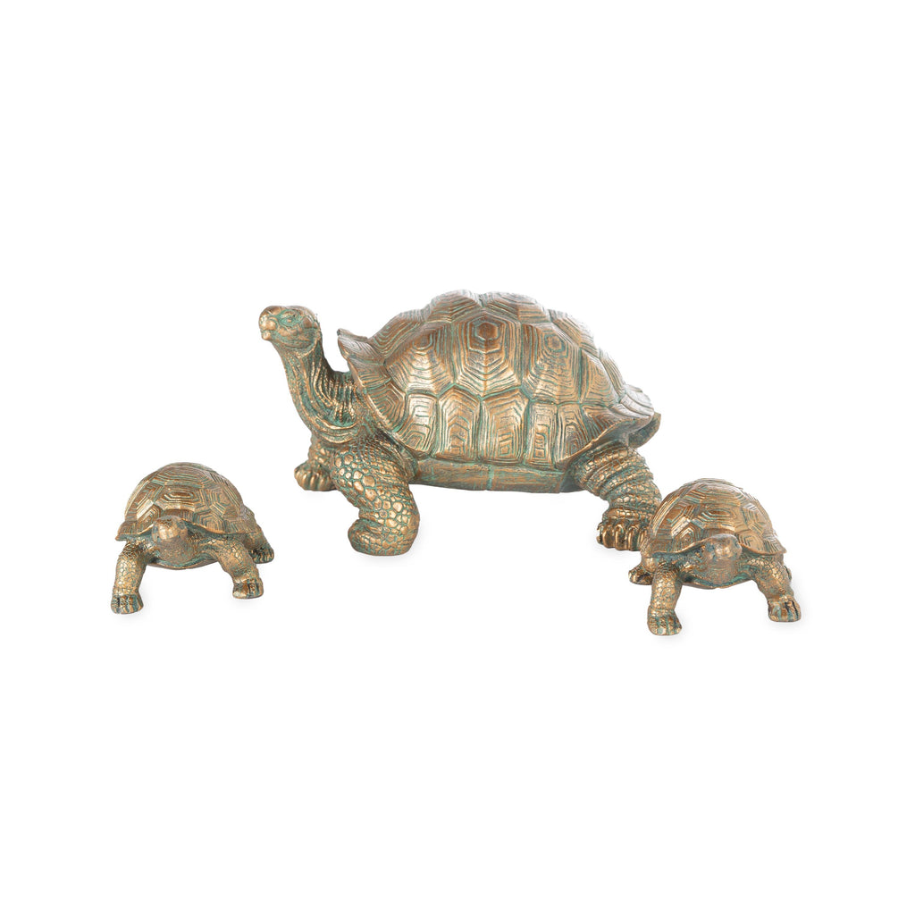 Enhance your garden with this charming Tortoise Family Resin Garden Accents set, featuring a lifelike trio of tortoises with detailed textures and a bronze finish, perfect for outdoor display.
