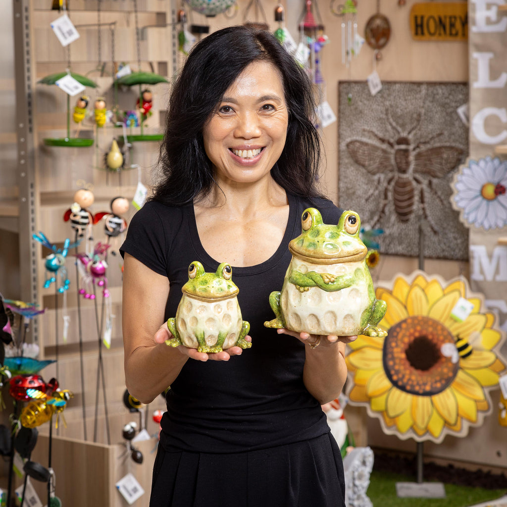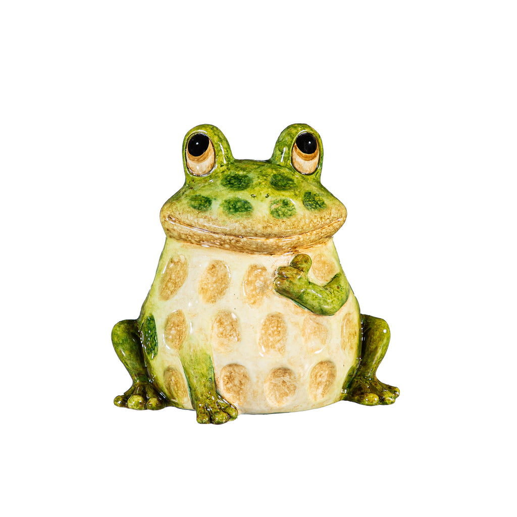 Add charm to your outdoor space with this set of ceramic frog statues. Perfect for enhancing garden aesthetics, these playful figures bring a whimsical touch to your yard.