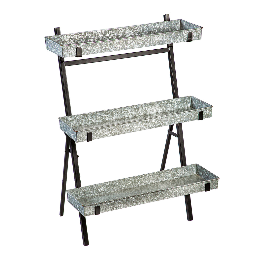 The What She Shed Plant Stand is a stylish and functional 3-tiered stand made of durable metal, perfect for displaying plants in any outdoor space.