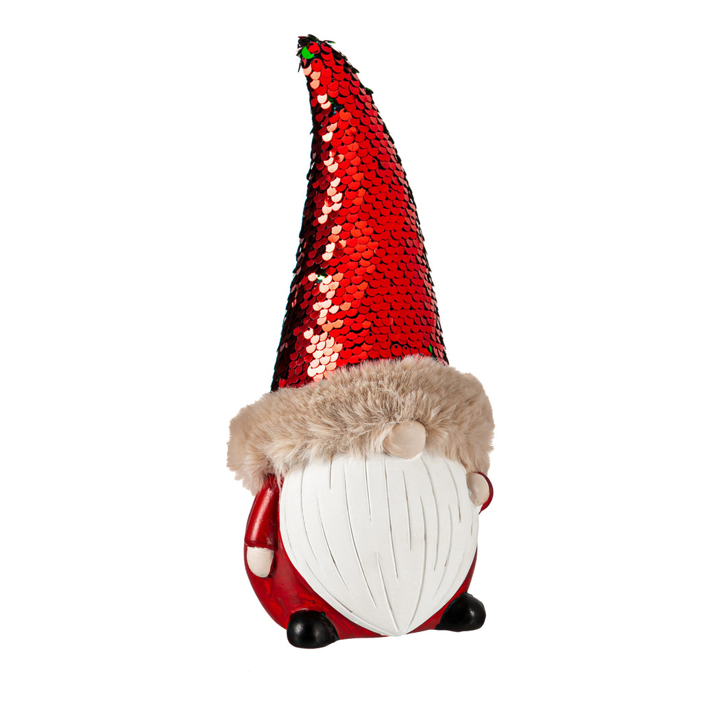 Add a festive touch to your holiday decor with this charming Terracotta Gnome Table Decor featuring a sequin hat and whimsical design.