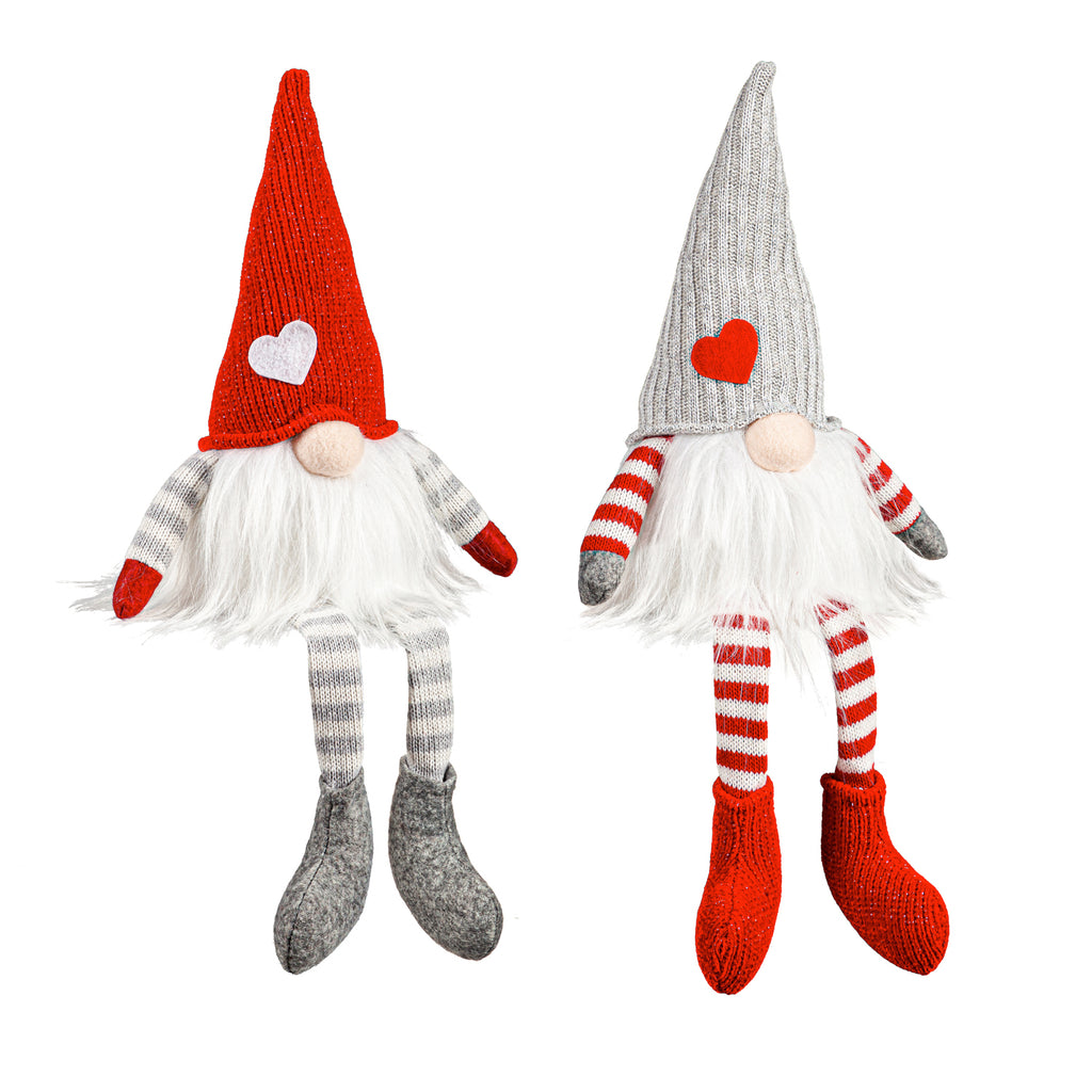 Celebrate love with these charming Valentine's Day LED Table Decor Gnomes, featuring heart-embellished hats and cozy fabric design in an assortment of red and gray.