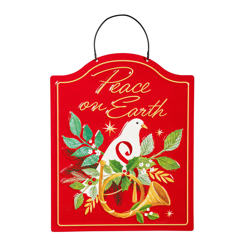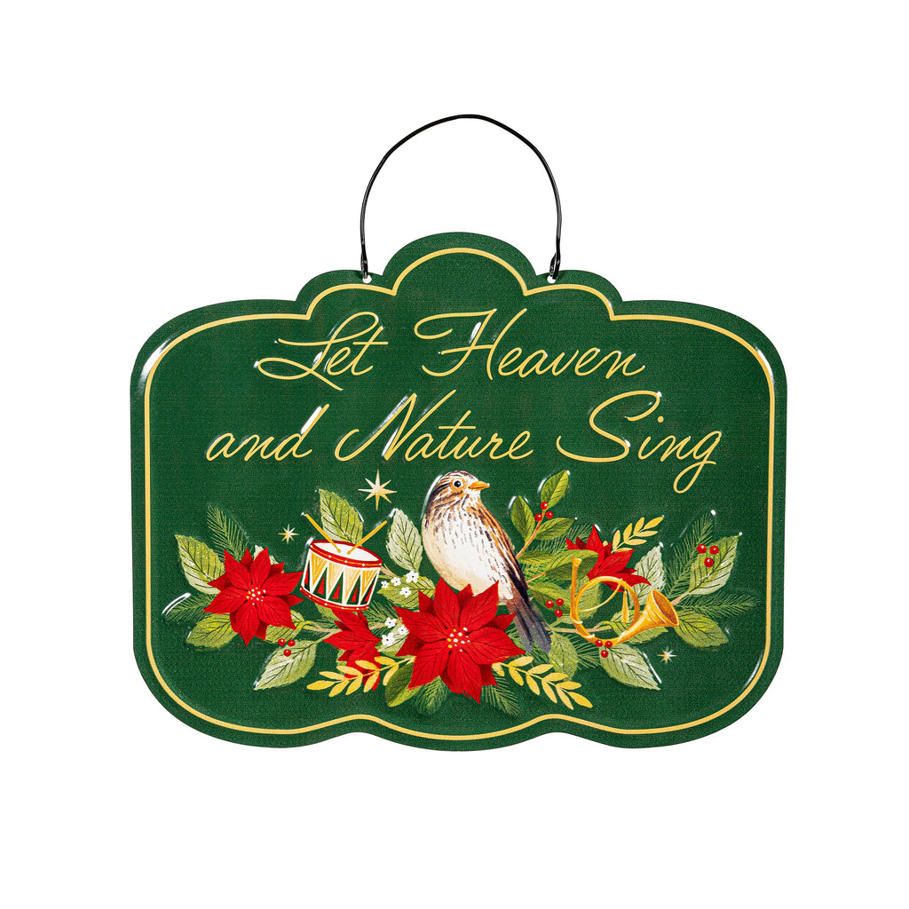 Add a festive touch to your garden with this set of four printed metal hanging bird signs, featuring holiday-themed designs and messages.