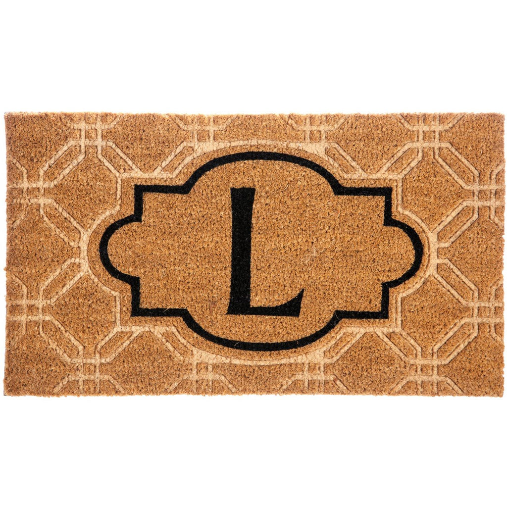 Offer a warm welcome to all who visit with this Embossed Monogram L Coir Mat. Woven from 100% natural coconut fiber, the colorful design is eco-friendly and perfect for both indoor and outdoor use. We use fade-resistant, colorfast dye to keep the mat's artwork looking fresh year after year. The thick fibers absorb moisture, making them extremely durable and weather resistant. The coir provides an anti-skid surface that is also great for trapping dust and dirt. Each mat features a recycled rubber backing to keep it in place.
