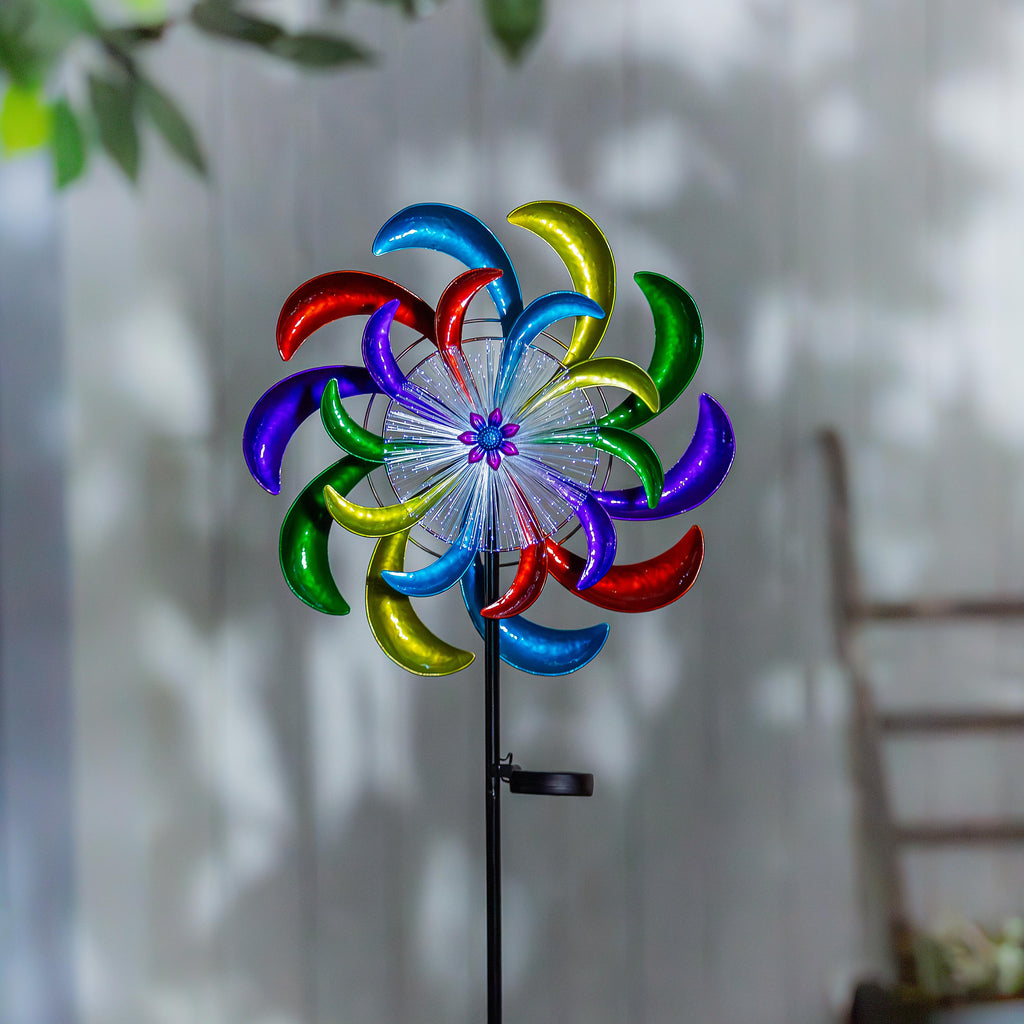 Elevate your garden with this vibrant 63-inch solar fiber optic spinner, designed to create a stunning visual display with its colorful, multi-blade design.