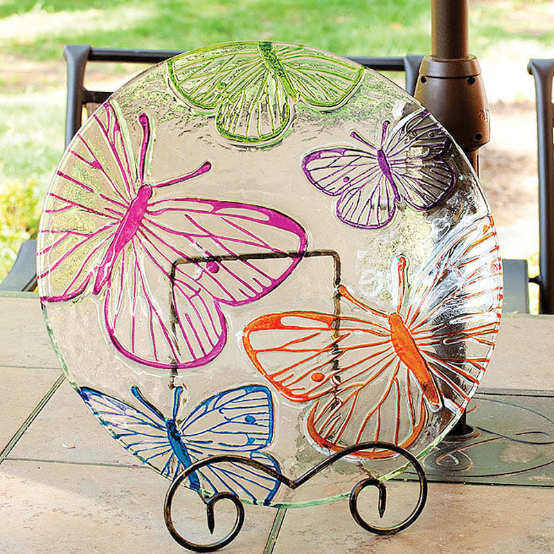 Showcase your favorite bird bath in style with this black easel stand. Crafted from powder-coated metal with a distressed finish, our rustic-chic piece is designed to hold a glass bird bath bowl upright for an artistic statement.