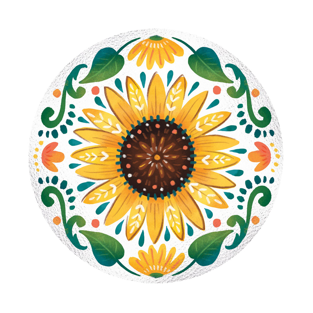 The Petal & Plow Birdbath features a vibrant glass folk art sunflower design, perfect for adding a touch of color to your spring garden. Its 18-inch circular shape is ideal for attracting birds and enhancing your outdoor space.