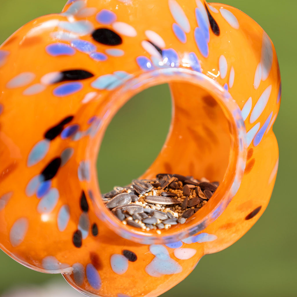 Enhance your garden with the vibrant Art Glass Hanging Petal Shaped Bird Feeder, perfect for springtime bird watching. Its unique floral design adds a splash of color while attracting your feathered friends.