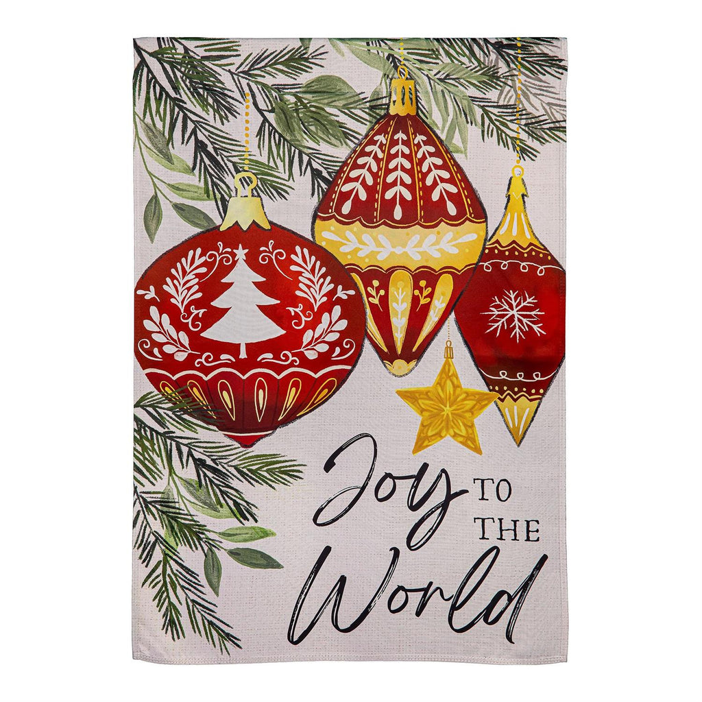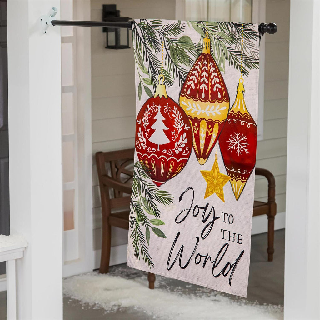 Celebrate the festive season with the Joy To The World Ornaments Suede House Flag. This elegantly designed flag features a stunning arrangement of holiday ornaments and lush greenery, bringing warmth and cheer to your home. Crafted from durable suede, it withstands the elements while maintaining its vibrant colors. Measuring 29 inches by 43 inches, this flag makes an eye-catching addition to any outdoor space, setting the perfect holiday ambiance for guests and passersby alike. Display this flag proudly to spread joy and festivity throughout your neighborhood.