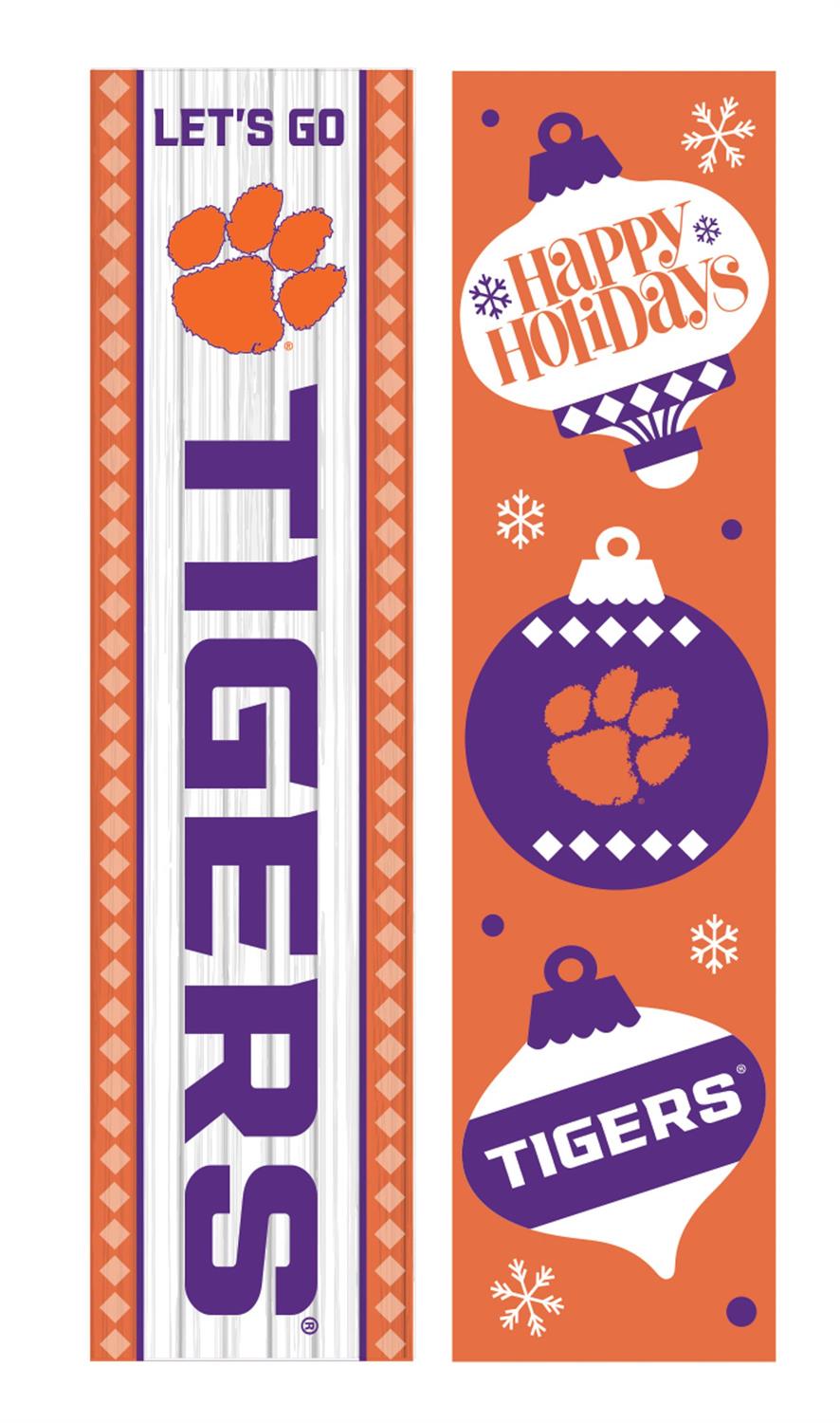 Celebrate the holiday season and show your team spirit with this 46-inch Double Sided Leaner featuring Clemson University. Perfect for your porch, entryway, or anywhere you want to display your allegiance, this leaner combines festive cheer with team pride. The vibrant colors and iconic logo make it a standout piece for any fan. Its durable construction ensures it lasts through the season, while the reversible design provides versatility in display options. This leaner is a must-have for any dedicated Clemson fan looking to enhance their holiday décor.
