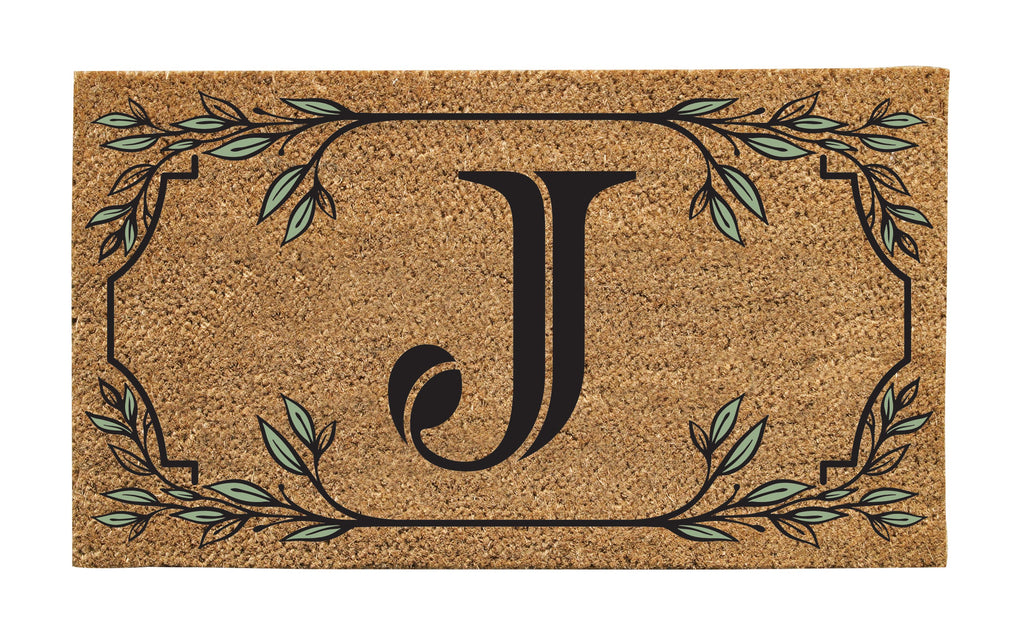 Welcome your guests with this elegant Monogram Coir Mat featuring the letter 'J'. Its natural coir fibers and decorative border design make it a stylish addition to any entryway.