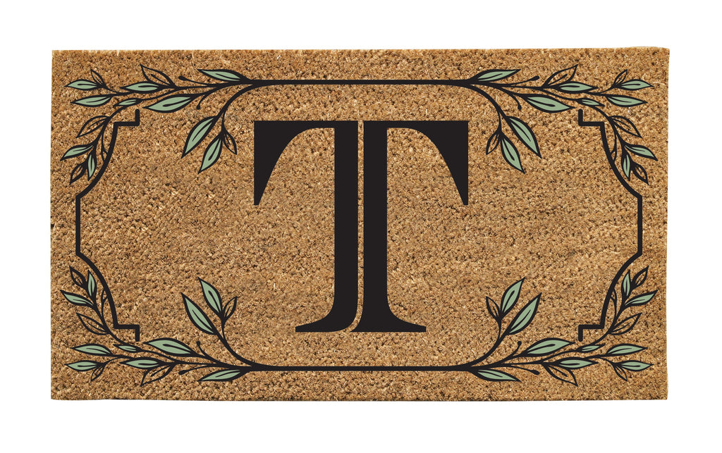 Welcome guests with this elegant Monogram Coir Mat featuring the letter 'T' and a charming leaf design. Perfect for everyday use, it adds a personal touch to any entryway.