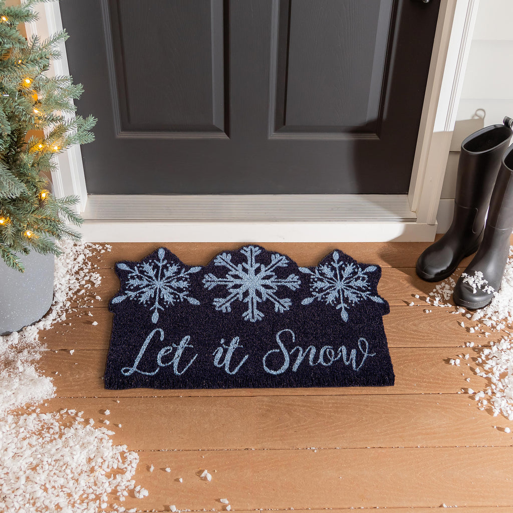 Welcome the winter season with the charming 'Season To Sparkle' Coir Mat. Crafted from durable coir, this mat features a delightful snowflake pattern and a festive 'Let it Snow' message, making it perfect for adding a touch of holiday cheer to your doorstep. Its natural texture effectively traps dirt and moisture, ensuring a clean entryway. Measuring 18 x 30 inches, it's designed to fit most standard doorways and offers a warm greeting to family and guests alike. Ideal for outdoor use, this mat combines practicality with seasonal style.