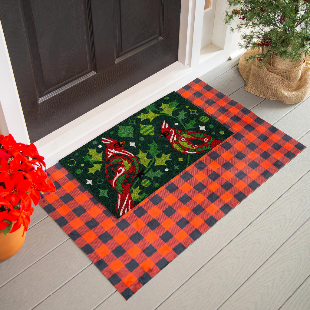 Welcome guests with the charming Decorated Cardinal Coir Mat, a delightful addition to your holiday décor. Crafted from durable coir, this mat features two vibrant cardinals perched amidst festive greenery, perfect for the winter season. Its natural fibers are excellent for scraping dirt and debris off shoes, keeping your entryway clean. Measuring 17.5 by 30 inches with a slim 0.59-inch profile, it fits most doorways without obstructing door movement. Ideal for adding a touch of festive cheer to your porch or entryway.