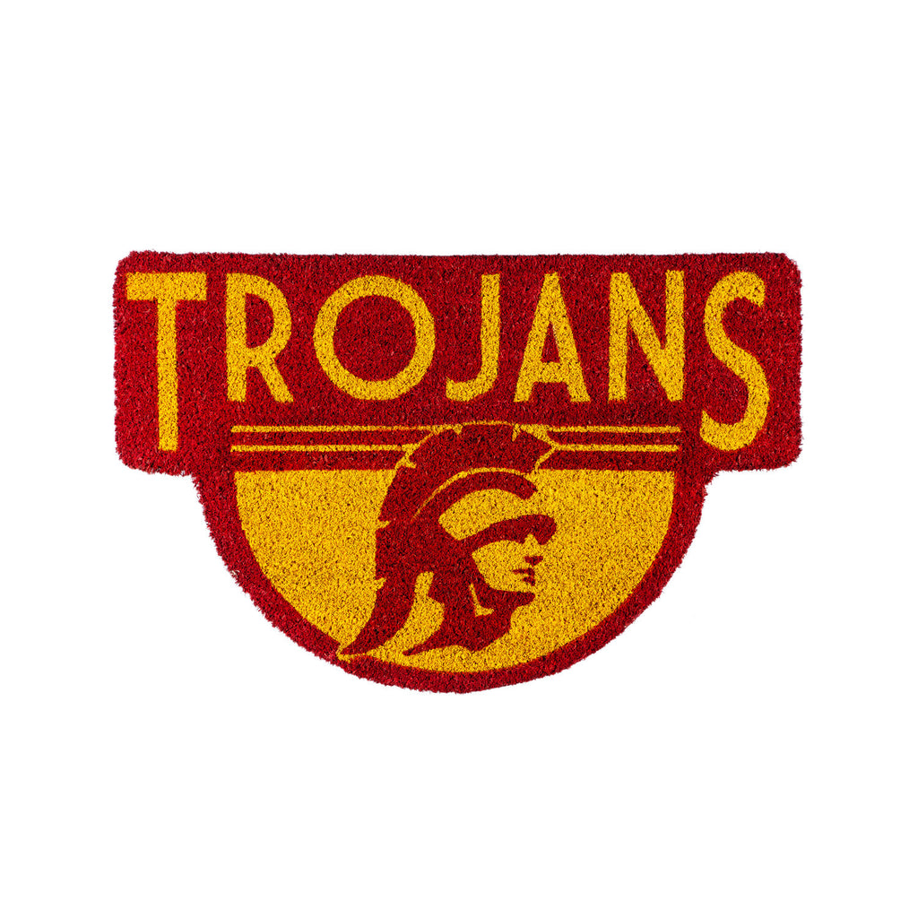 Show your USC spirit with this University of Southern California shaped coir mat. Perfect for any fan's entryway, this mat combines practicality with style. Made from durable coir material, it effectively traps dirt and moisture while providing a warm welcome to guests. The vibrant colors and bold design make it a standout piece for your doorstep. Sized at 28.0 inches wide by 18.0 inches high, it's an ideal fit for any entry space.