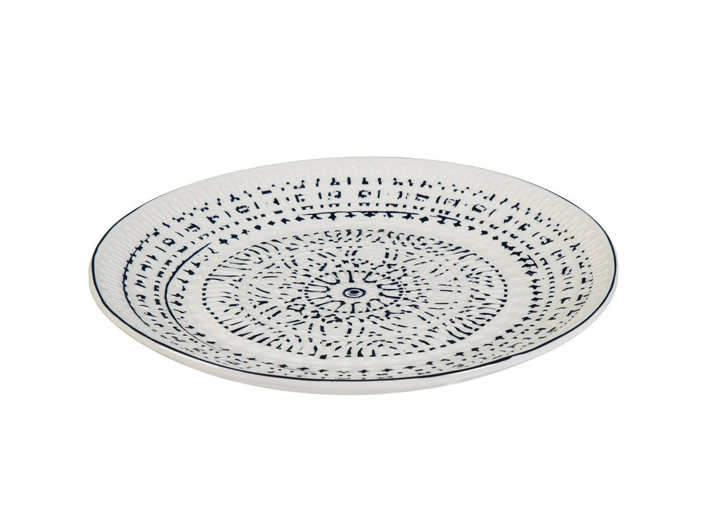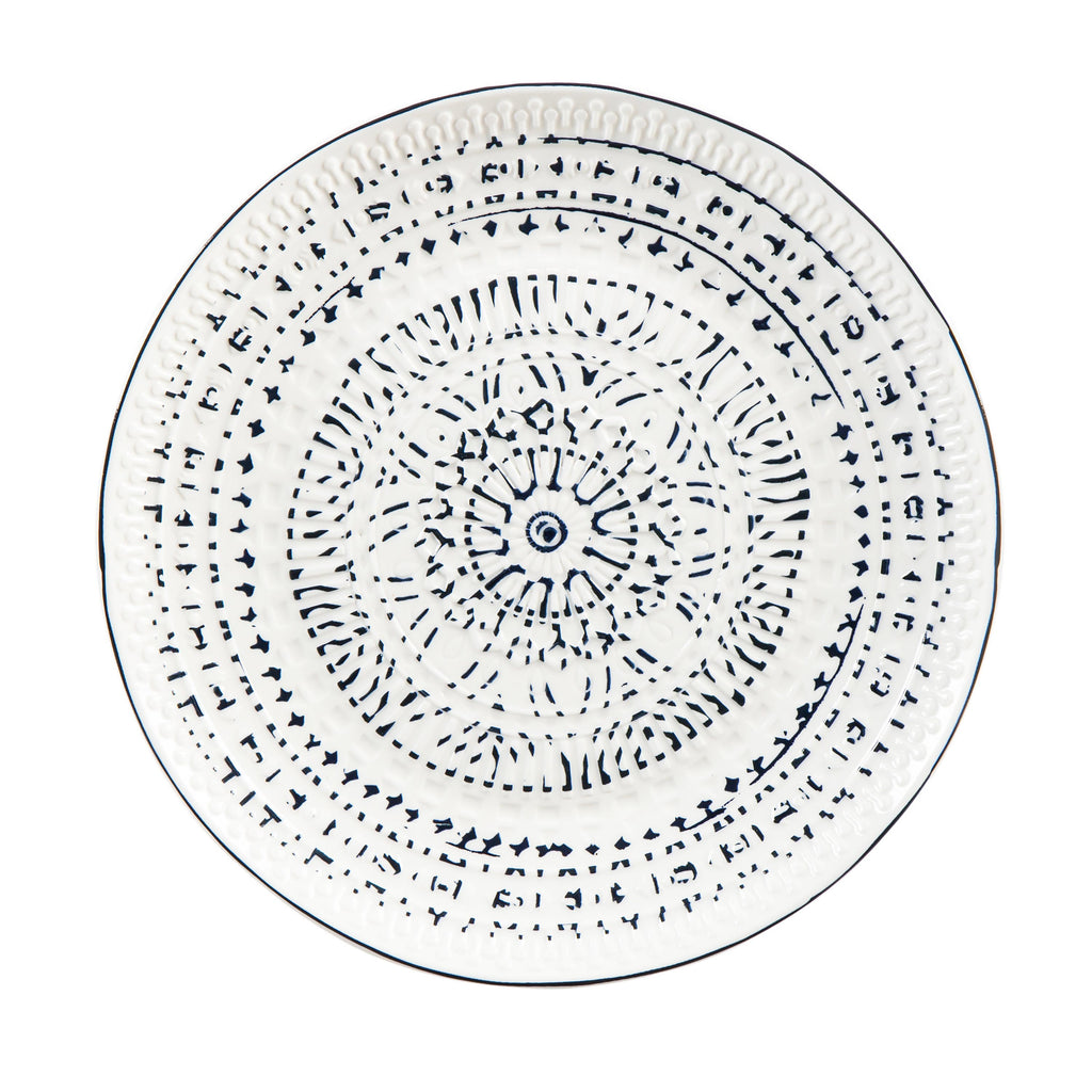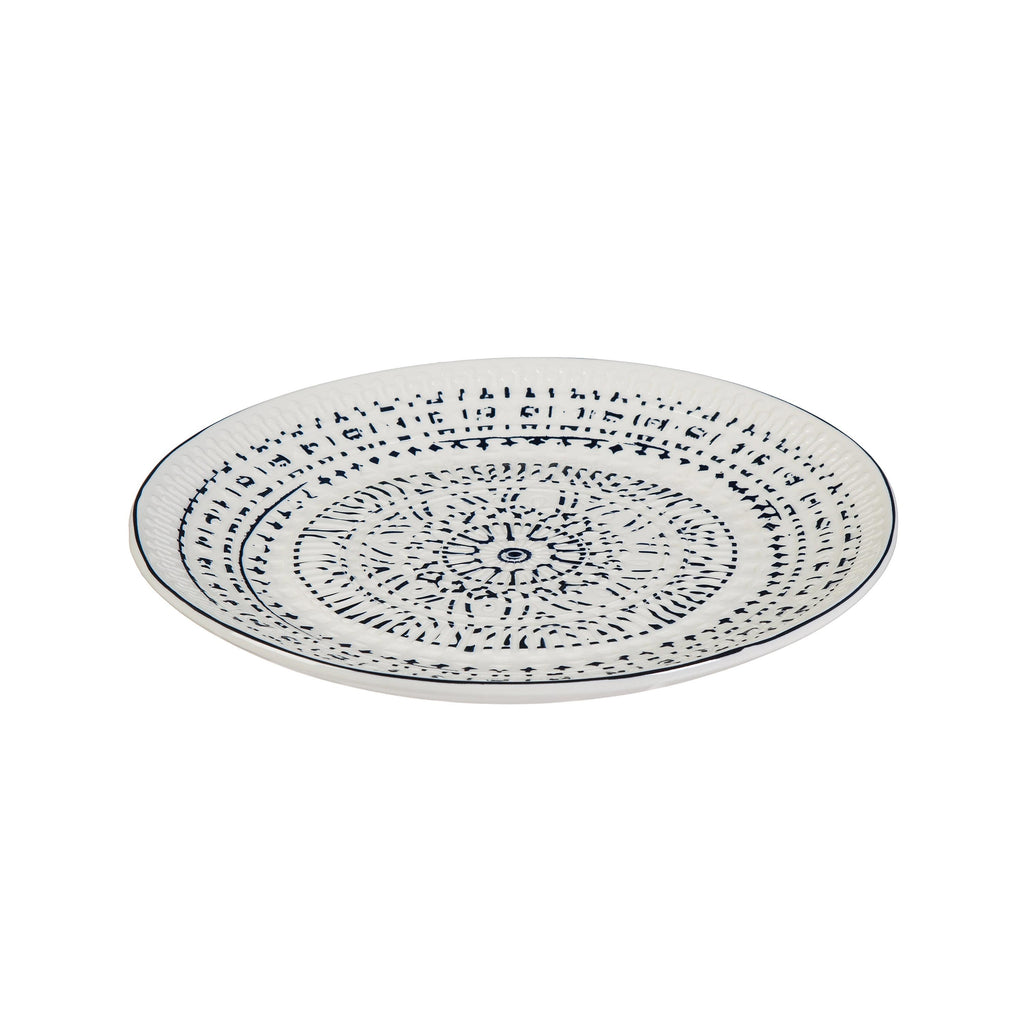 Enhance your dining experience with this Ceramic Lunch Dinner Plate from the Inkwell Collection, featuring an intricate blue and white pattern.