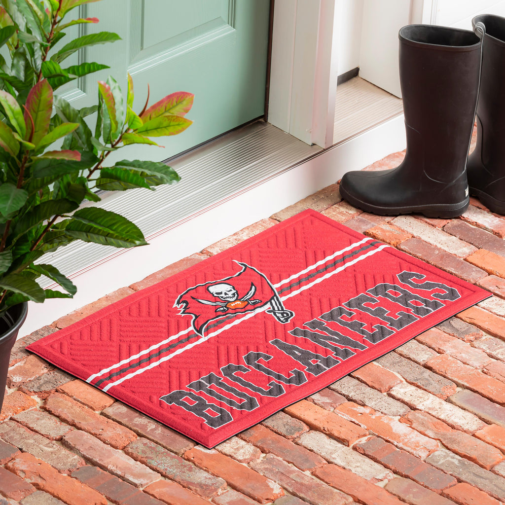 Show your team spirit with the Embossed Cross Hatch Mat featuring the iconic Tampa Bay Buccaneers logo. Perfect for welcoming guests, this durable doormat adds a touch of fandom to any doorstep.