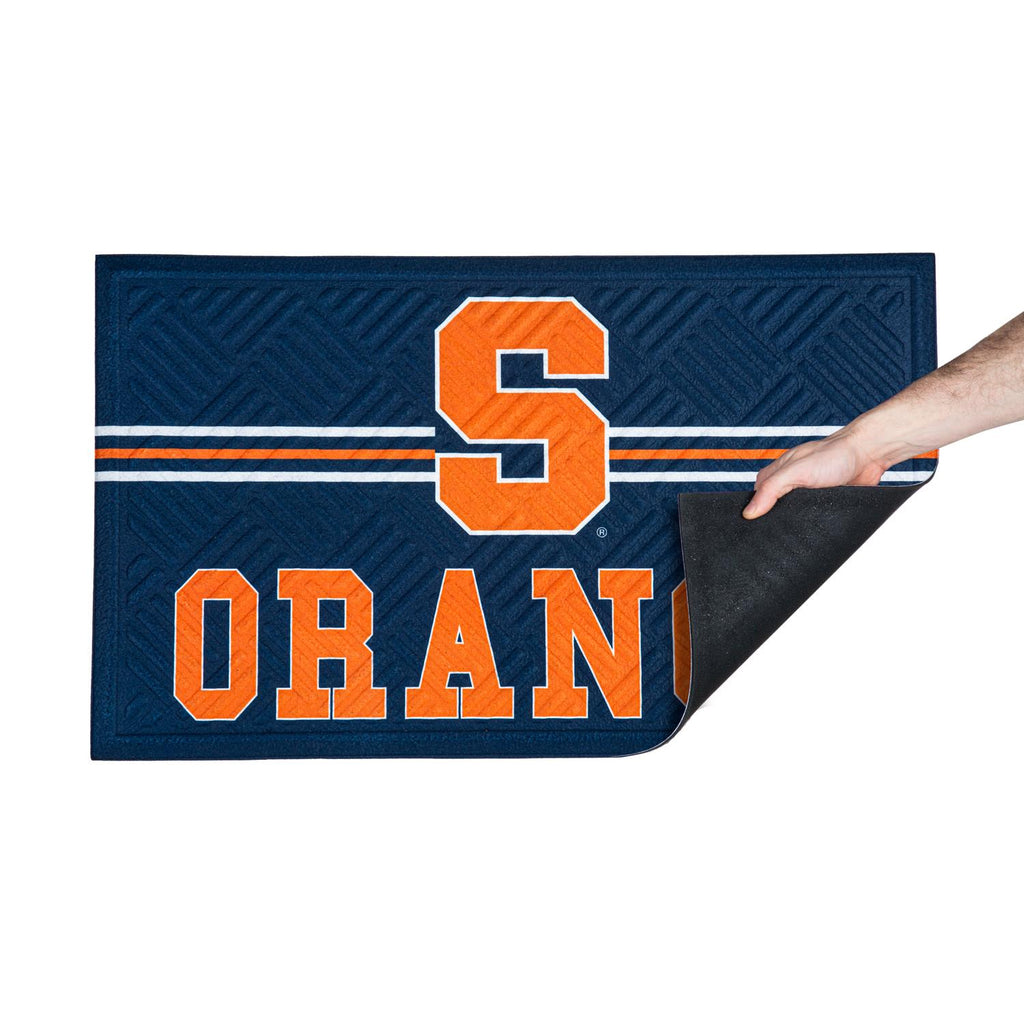 Show your Syracuse University pride with this embossed mat featuring a striking cross hatch design. Perfect for any fan, this mat is crafted to withstand the elements while enhancing your entryway or indoor space. The vivid colors and bold lettering make a statement, while the durable construction ensures long-lasting use. Measuring 30 inches wide by 18 inches tall, it's the ideal size for any doorway, providing both functionality and style. Whether you're welcoming guests or celebrating game day, this mat is a must-have for any Orange supporter.