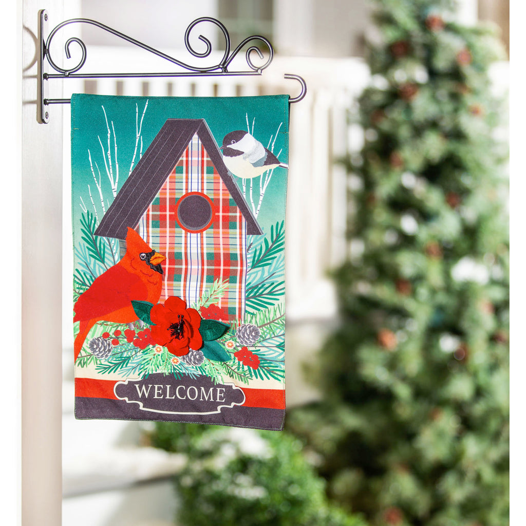Plaid Birdhouse Garden Linen Flag,14l10030