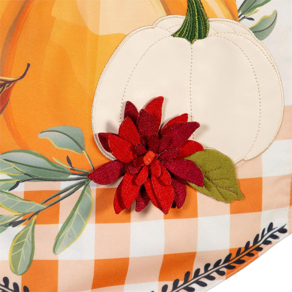 Celebrate the warmth of fall with the Give Thanks Pumpkins Everlasting Impression Textile Décor. This beautifully crafted banner features a vibrant design with pumpkins, autumn leaves, and a welcoming message of gratitude. Measuring 12.5 inches in width and 28 inches in height, it’s perfect for indoor or outdoor display. The soft textile material is adorned with seasonal colors and patterns, bringing a cozy touch to your home. A decorative tassel adds a charming finish, making it an ideal piece for Thanksgiving or any autumn gathering.