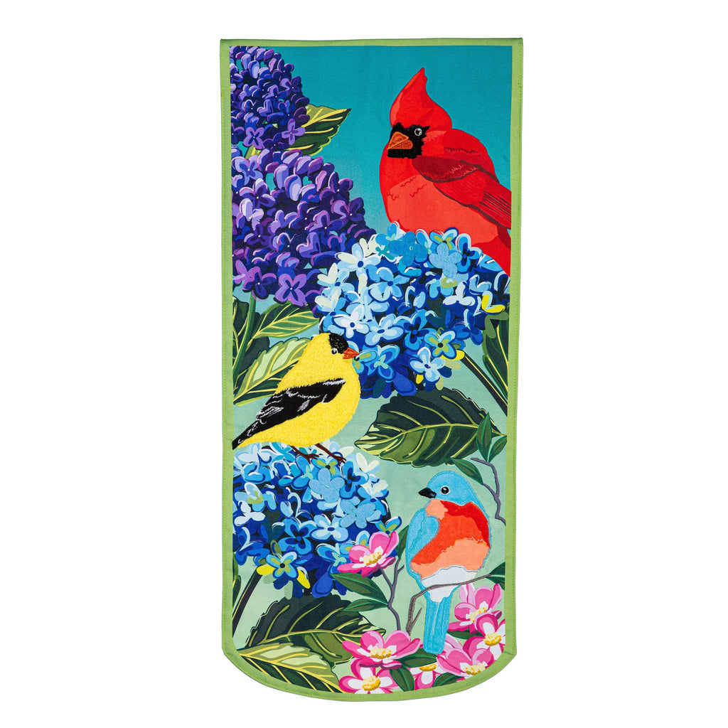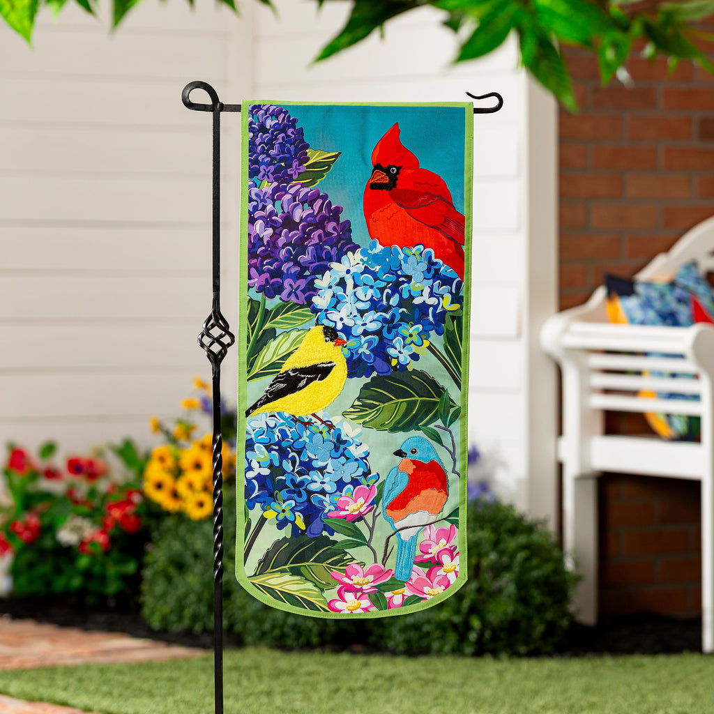 Enhance your garden with the Songbird Summer Everlasting Impression Textile Decor, featuring vibrant birds and floral design. Perfect for adding a touch of elegance to your outdoor space this spring.