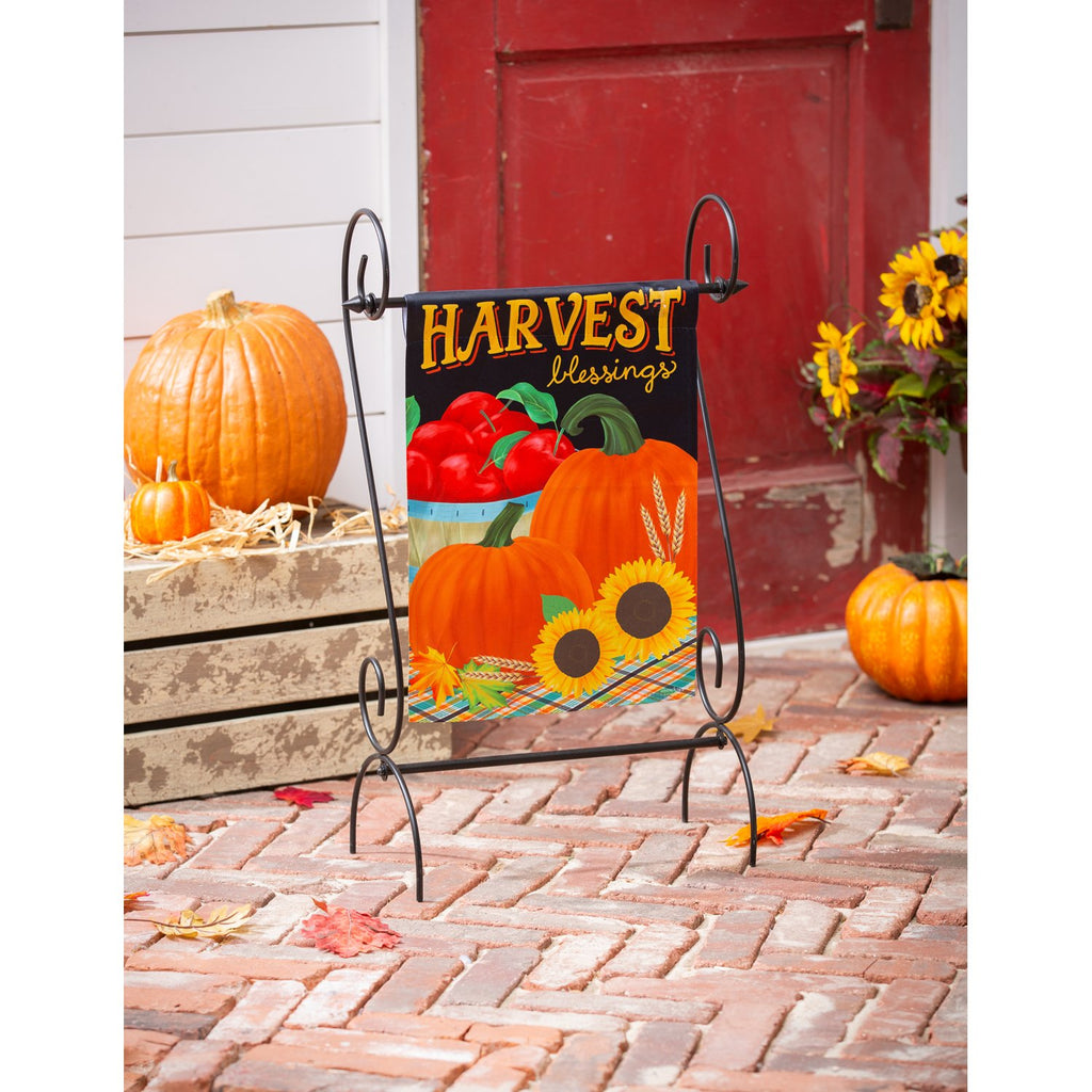 Celebrate the season with the Harvest Blessing Pumpkins Garden Suede Flag, perfect for adding a festive touch to your outdoor decor. Featuring vibrant pumpkins and sunflowers, this flag is crafted with durable suede material for a lasting impression.