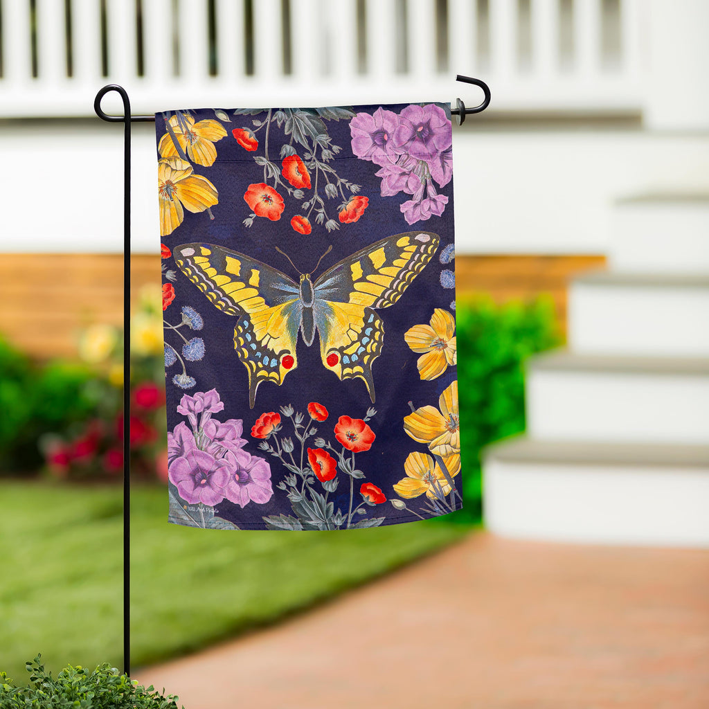 Enhance your outdoor space with the Butterfly Garden Suede Garden Flag, featuring vibrant butterflies and floral designs that capture the essence of spring.