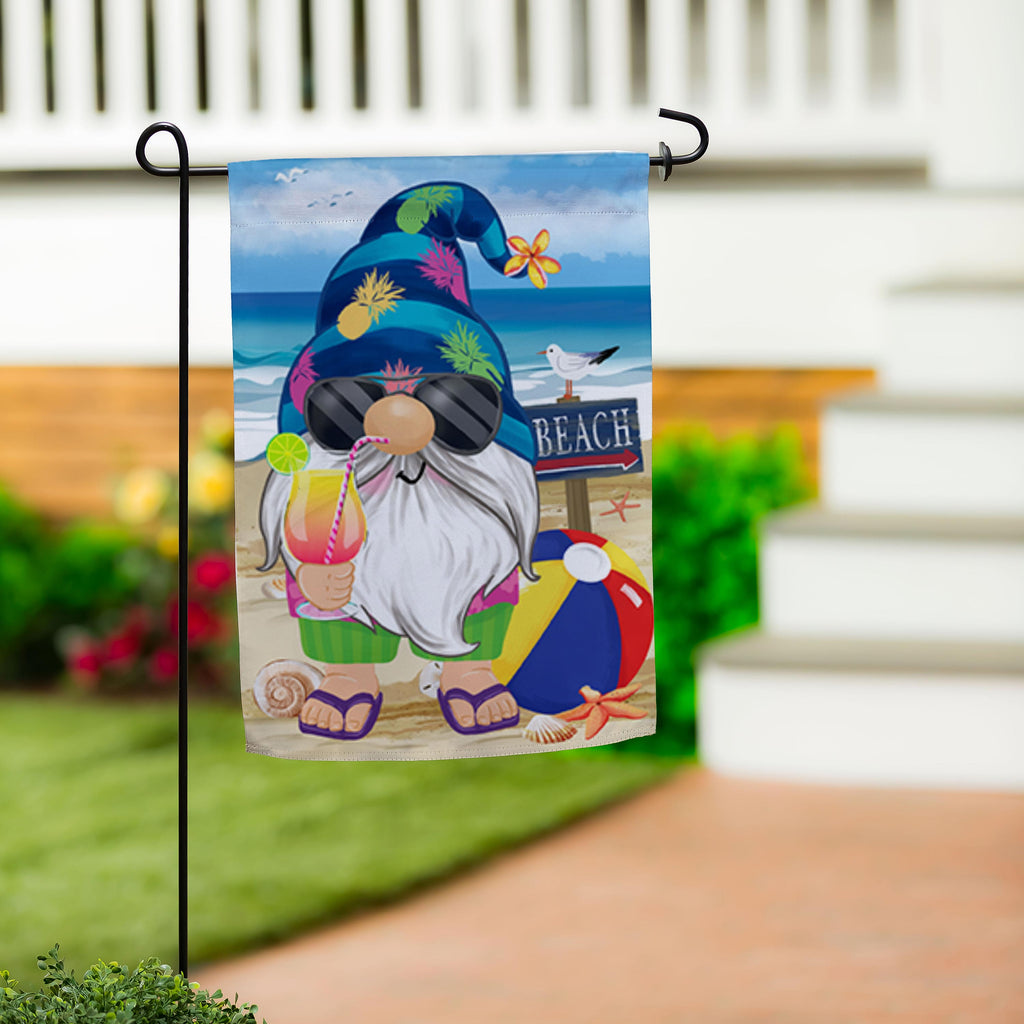 Add a touch of whimsy to your garden with the Beached Gnome Suede Garden Flag, perfect for brightening up your outdoor space this summer.