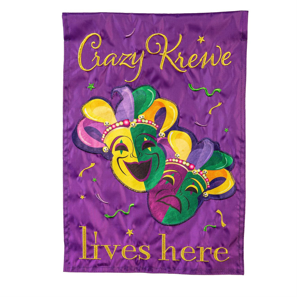 Mardi Gras Crazy Krewe Lives Here Applique Garden Flag