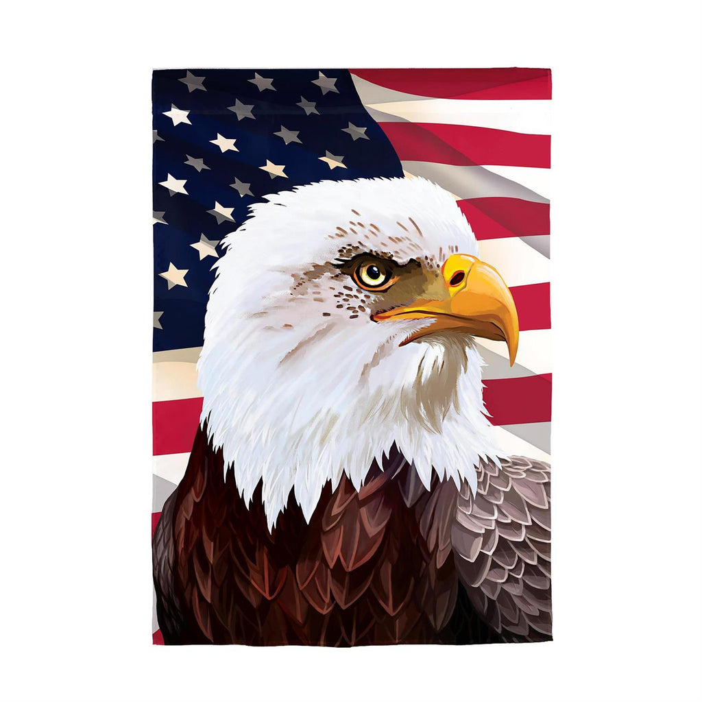 Celebrate your patriotism with the American Eagle Suede House Flag, a stunning addition to any home or garden. This 29x43-inch flag features a majestic bald eagle set against the stars and stripes of the American flag. Made from high-quality suede, it offers vibrant colors and durability, perfect for outdoor display. The intricate design captures the spirit of freedom and pride, making it a great choice for national holidays or everyday display. Easy to hang, this flag will be a standout feature in your décor.