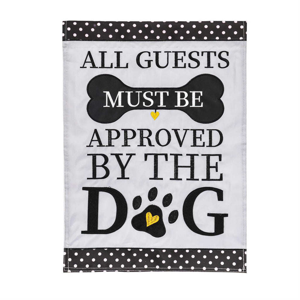 Welcome guests with a touch of humor and charm with the 'Approved by the Dog' Applique House Flag. Measuring 44 inches in length and 28 inches in width, this flag is perfect for showcasing your love for furry family members. Crafted with durable, weather-resistant fabric, this flag is designed to withstand the elements while maintaining its vibrant colors. The playful message, accented by a paw print and bone design, adds an inviting and whimsical touch to any home entrance. Perfect for dog lovers, this flag makes a delightful addition to your outdoor décor.