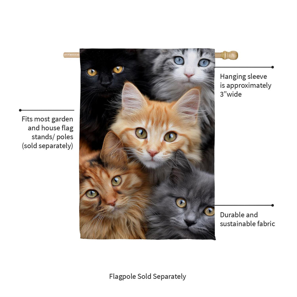 Transform your home's exterior with the charming CATS! Suede House Flag. Featuring an adorable cluster of curious cats, this flag is the perfect addition to any cat lover's decor. Measuring 43 inches in length and 29 inches in width, it is crafted from durable suede material that is both UV protected and weather resistant, ensuring vibrant colors season after season. Its double-sided design means you can enjoy the playful feline faces from any angle. Made from recycled PET fabric, this eco-friendly flag offers a sustainable way to showcase your love for cats while enhancing your garden or porch.