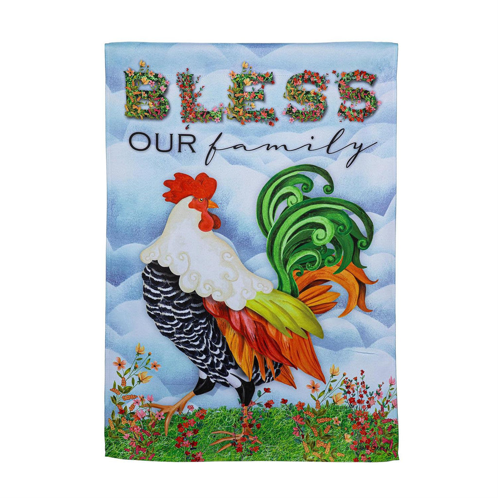 This charming flag adds an extra special touch to any home. It features a beautiful chicken surrounded by flowers. Flag is crafted of medium-weight suede fabric made from recycled plastic that provides a soft and durable texture. Artwork is heat transferred onto the sun-blocking material so that it is easily viewed from both sides. The weatherproof flag will not fray or fade with continued outdoor use. This flag features a sleeve for use with any standard flagpole or stand, sold separately.