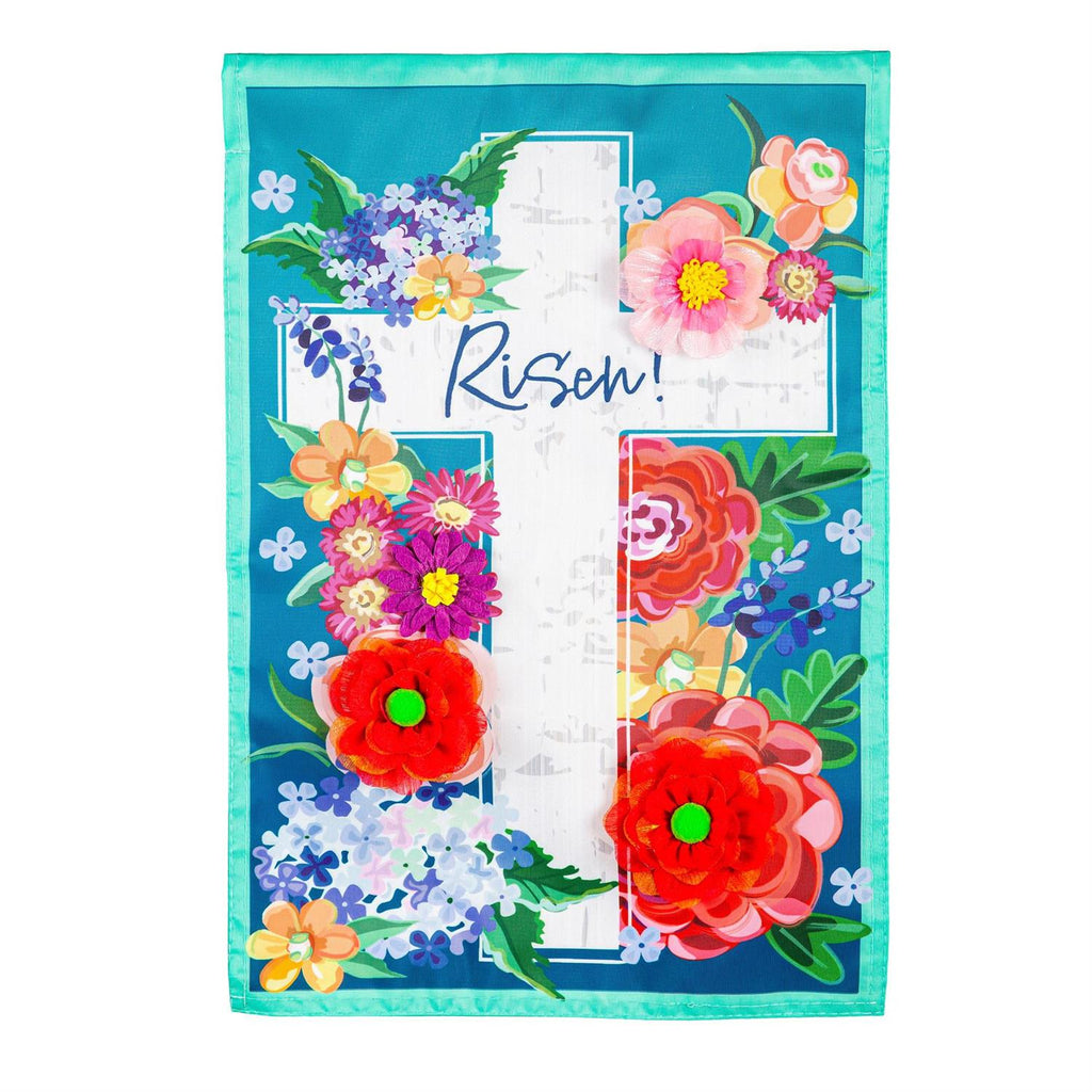Celebrate the joy of Easter with this vibrant Floral Easter Cross Applique House Flag. Measuring 28 inches wide and 44 inches tall, this flag features a beautifully detailed cross adorned with colorful floral designs, perfect for adding a festive touch to your home or garden. Made from high-quality materials, it is designed for durability and outdoor use. The striking colors and intricate applique work ensure this flag will be a standout addition to your seasonal décor. Welcome guests with a heartfelt message of renewal and hope, beautifully displayed on your porch or in your garden.