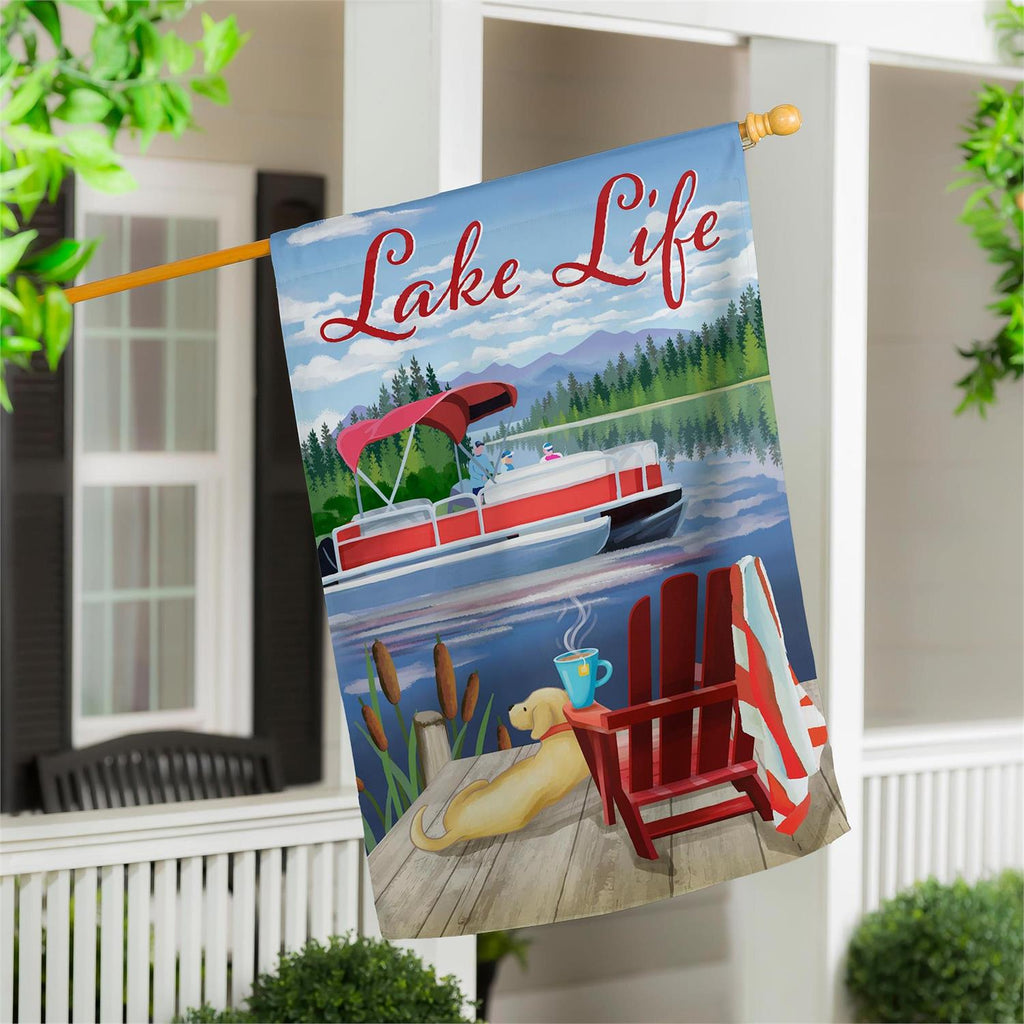 This charming flag adds an extra special touch to any home. It features a colorful beachy design that’s bright colors and detailed design is sure to catch everyone’s attention. Each Evergreen applique flag is carefully crafted from multiple layers of 310 denier nylon made from recycled plastic that can withstand a variety of weather conditions. We combine pieces of fade-resistant, strong fabric with tight, detailed stitching to create a dimensional mosaic effect. The soft yet heavyweight material illuminates beautifully in sunlight. Each flag features a sleeve that fits standard flagpoles or stands, sold separately. Due to the nature of the packaging, wrinkling may have occurred. Once item is unfolded and mounted on hardware, the creases will naturally fall out. Spot clean only. Never put in a dryer. When not in use, flags can be hung in a closet or placed in a storage container.