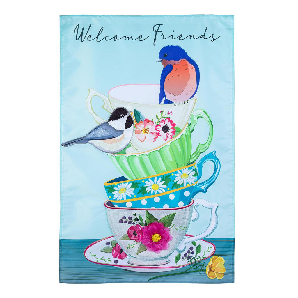 This charming flag adds an extra special touch to any home. It features a beautiful design of songbirds. Each Evergreen applique flag is carefully crafted from multiple layers of 310 denier nylon made from recycled plastic that can withstand a variety of weather conditions. We combine pieces of fade-resistant, strong fabric with tight, detailed stitching to create a dimensional mosaic effect. The soft yet heavyweight material illuminates beautifully in sunlight. Each flag features a sleeve that fits standard flagpoles or stands, sold separately. Due to the nature of the packaging, wrinkling may have occurred. Once item is unfolded and mounted on hardware, the creases will naturally fall out. Spot clean only. Never put in a dryer. When not in use, flags can be hung in a closet or placed in a storage container.