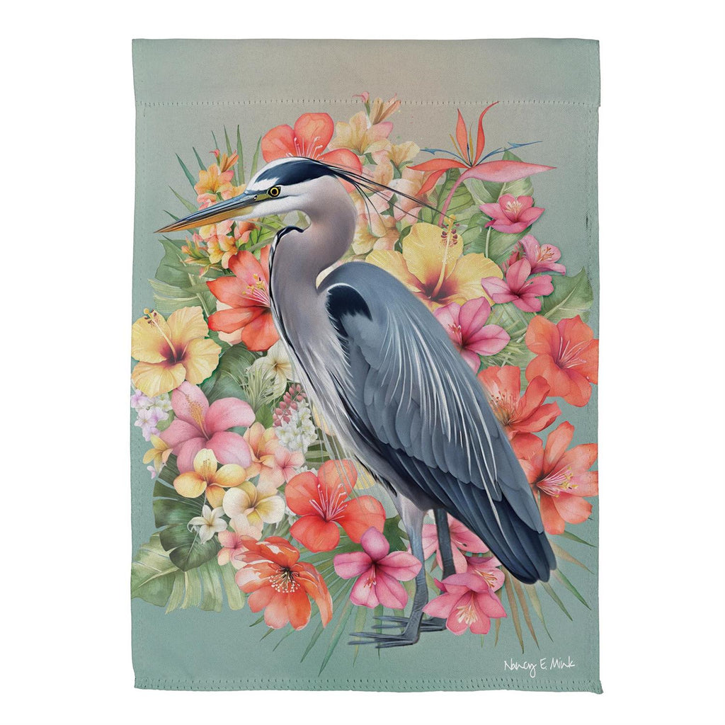 Enhance your outdoor space with the Tropical Heron Suede House Flag. Measuring 43 by 29 inches, this sophisticated flag features a stunning heron surrounded by vibrant tropical flowers. Made from high-quality suede material, it offers a luxurious texture and excellent durability against the elements. Ideal for adding a pop of color and a touch of elegance to your garden or front porch, this flag is a perfect choice for nature enthusiasts and bird lovers alike. Its vivid colors and intricate details will make it a standout piece in any setting.