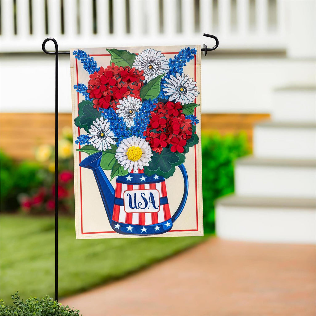 USA Floral Watering Can Applique House Flag