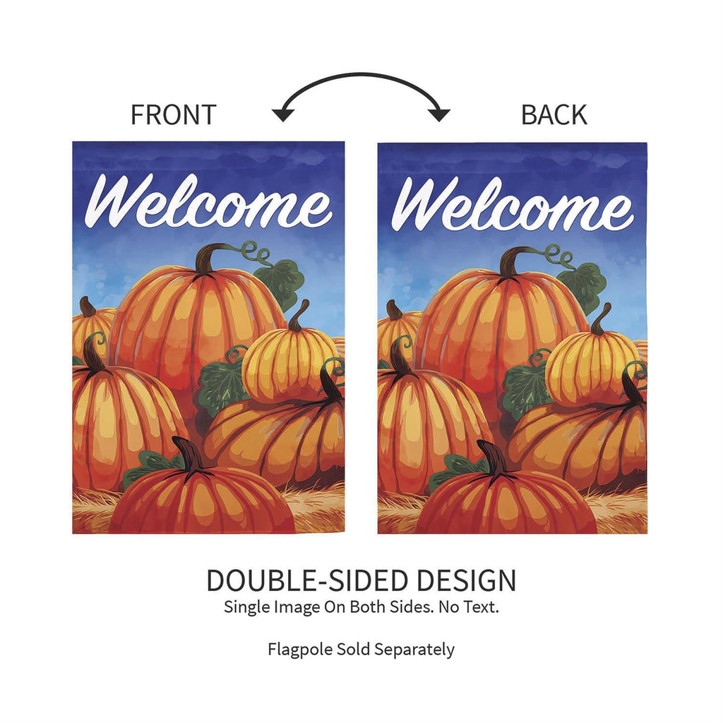 Celebrate the vibrant colors of fall with the Welcome Pumpkin Patch Applique House Flag. Measuring 28 inches in width and 44 inches in height, this flag beautifully showcases a delightful pumpkin patch scene against a serene blue sky. Crafted with high-quality fabric, the applique design adds depth and texture, making it a standout piece for your home's exterior. Perfect for welcoming guests during the autumn season, this flag is a charming addition to any outdoor décor.