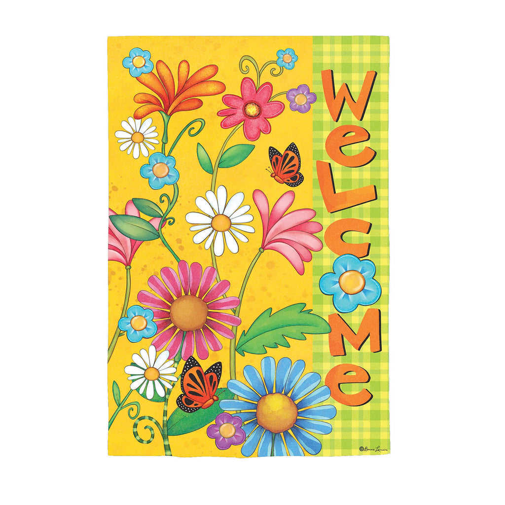 Embrace the beauty of spring with this vibrant Welcome Spring Suede House Flag. Featuring colorful flowers and butterflies, it's perfect for adding a cheerful touch to your outdoor space.