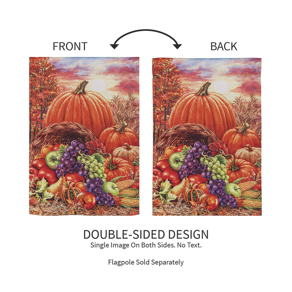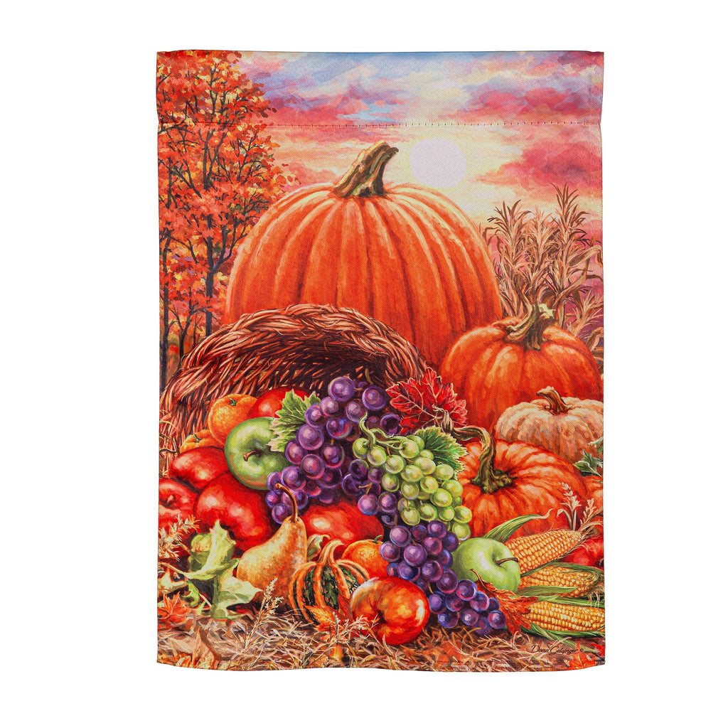 Celebrate the abundance of fall with the Plentiful Harvest Suede House Flag, featuring vibrant pumpkins and autumn foliage in rich, warm colors.