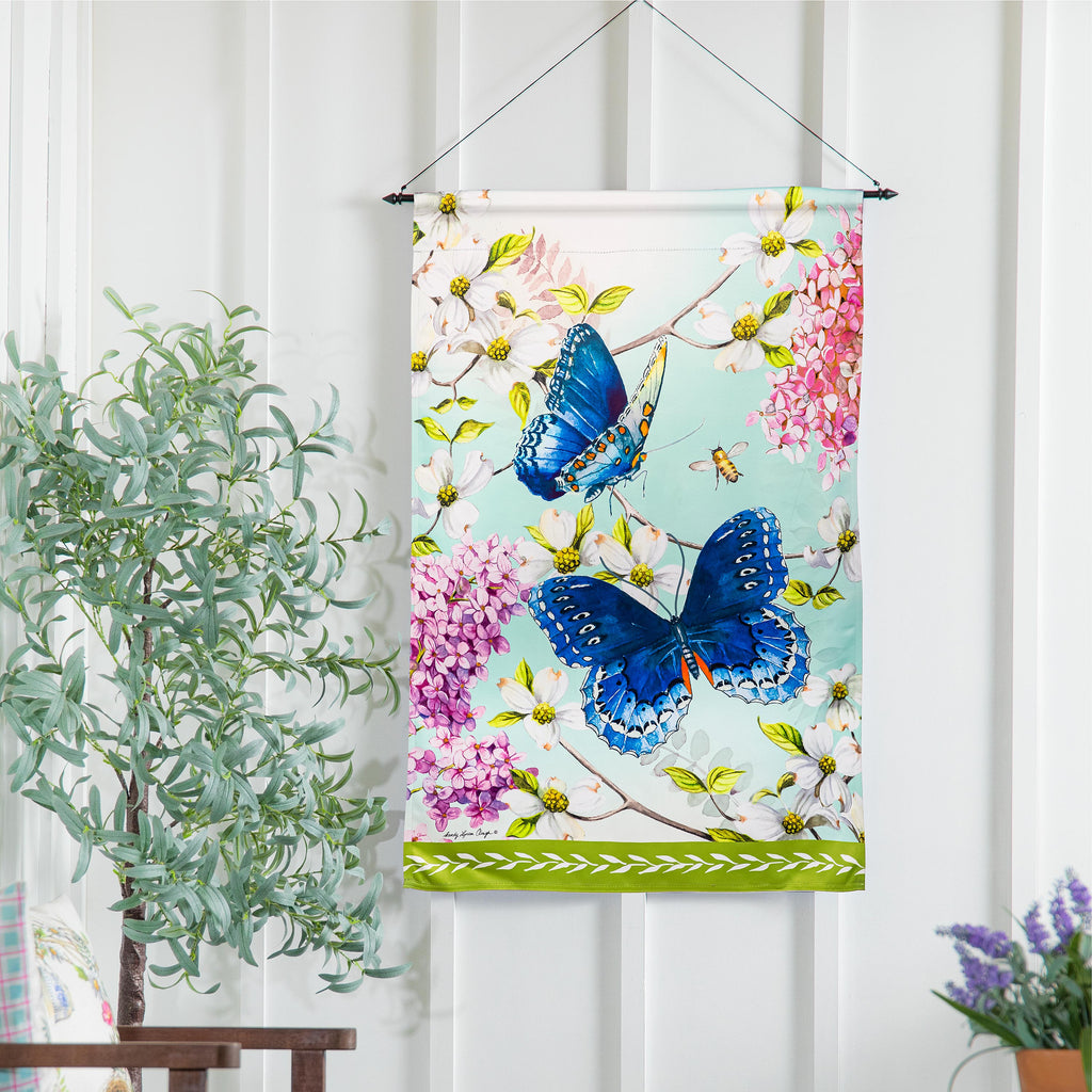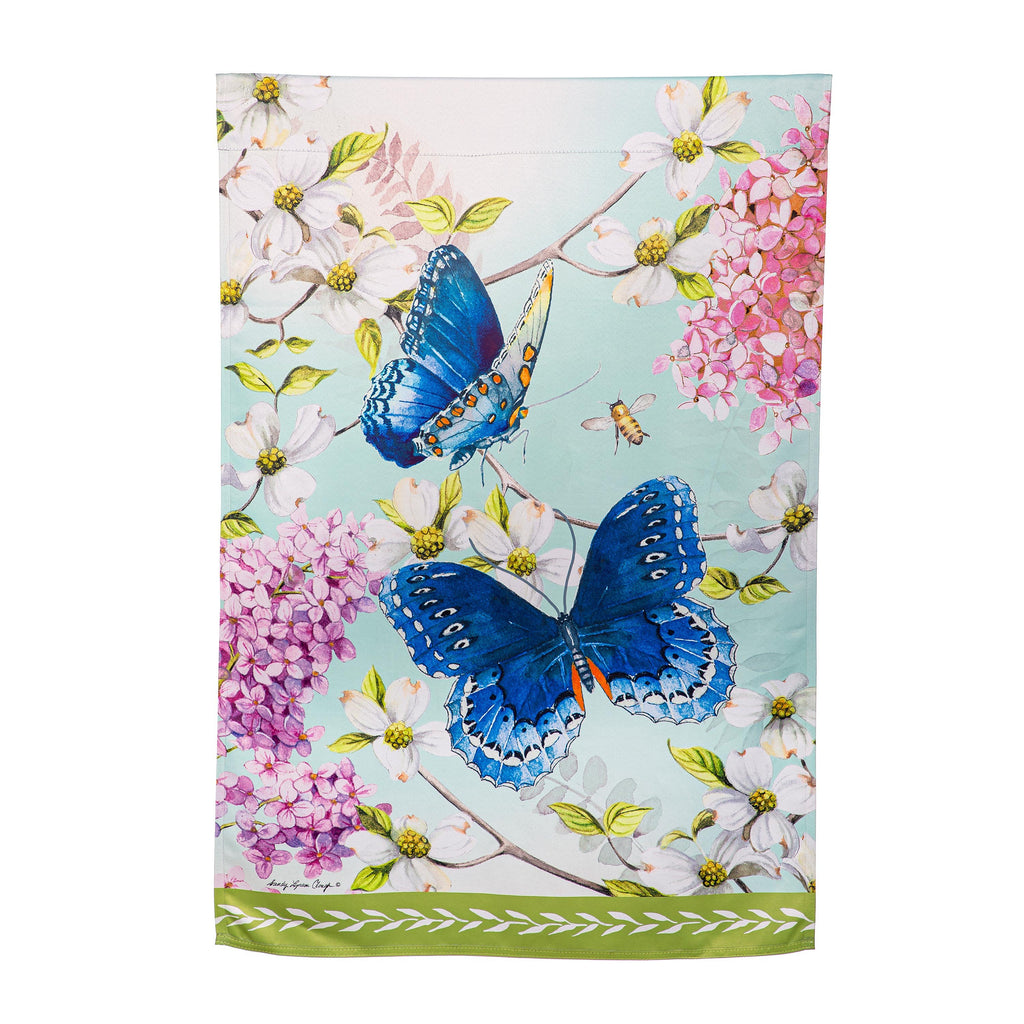 Elevate your garden with the My Garden Suede House Flag, featuring vibrant butterflies and spring blossoms against a serene sky. Made from high-quality suede, it seamlessly blends durability with artistic design.