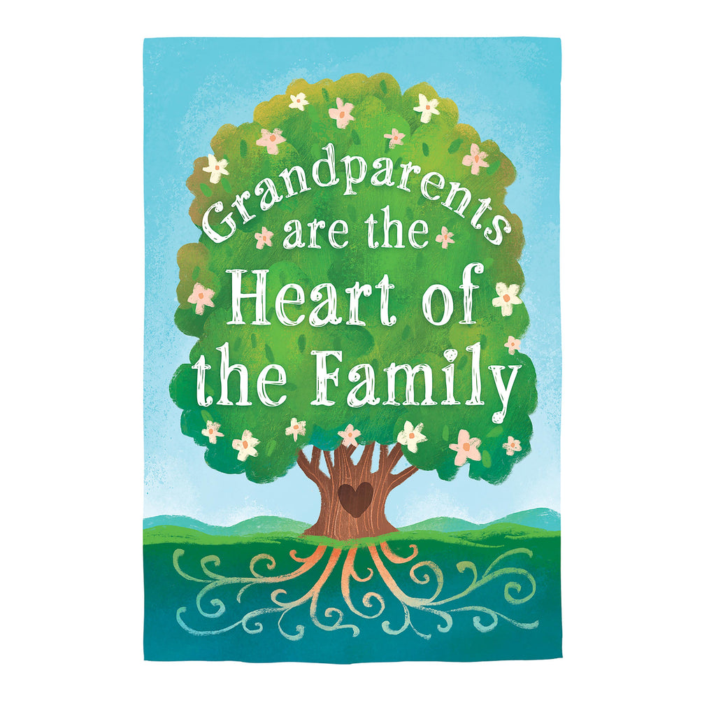 - Features a beautiful tree design with the message 'Grandparents are the Heart of the Family'.