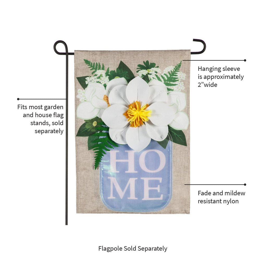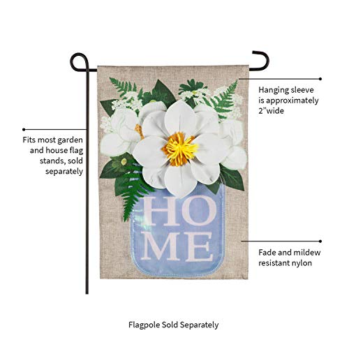 Enhance your garden with the charming Magnolia Mason Jar Garden Burlap Flag. Measuring 12.5 inches by 18 inches, this delightful flag offers a warm, welcoming touch to any outdoor space. The flag features a beautiful magnolia design with vibrant colors that stand out against the natural burlap background. Ideal for spring and summer, the flag is crafted from durable burlap material, ensuring it withstands the elements. Perfect for adding a touch of rustic elegance to your garden, patio, or yard.
